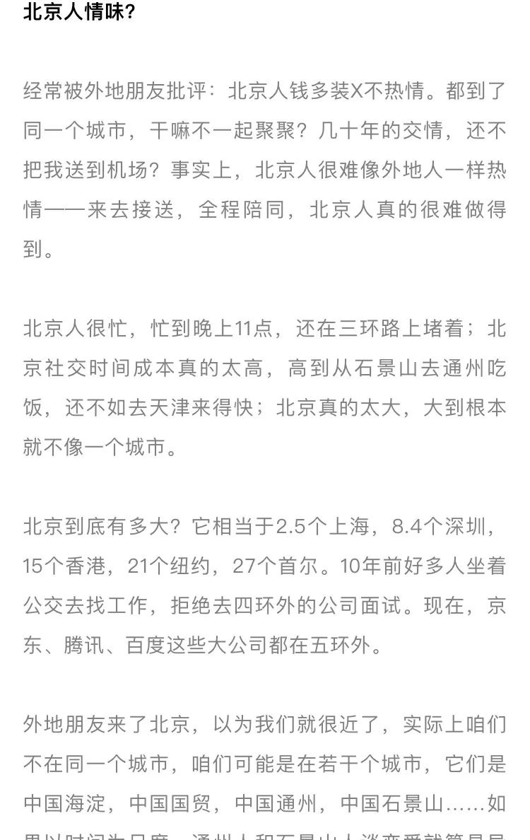 例如微信公众号「张先生说」的这篇文章:《北京,有两千万人假装在生活!》