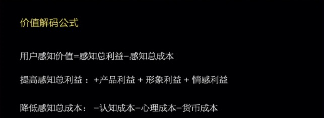 大多数时候,我们购买或使用某件产品,不只是为了功能上的满足,还为了获得心理满足,包括归属感、爱、自尊、成就感、社会认同、享受、安全、快乐等附加值。这些利益,形成了用户可以感知到的价值总和。
