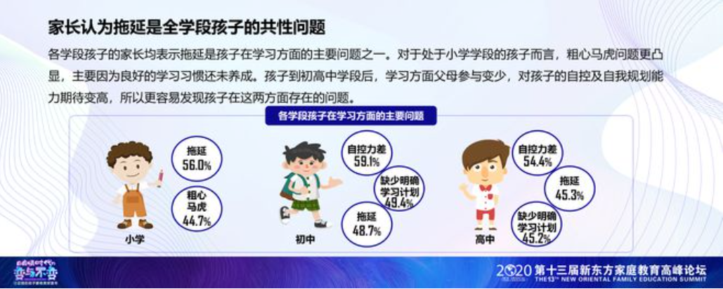 家长在教育过程中、孩子在学习过程中会遇到哪些无法解决、但至关重要的问题?这里的答案可以从我写的第一期文章《培训机构线上引流12钗之(1)用户画像是核武器》中找。这里抛转引玉,比如近期,新东方家庭教育发布《2020中国家庭教育现状调查报告》,报告指出,孩子拖延、自控力差、粗心马虎等是家长吐槽较多的问题,那么你的课程是不是可以围绕这些痛点来设计?