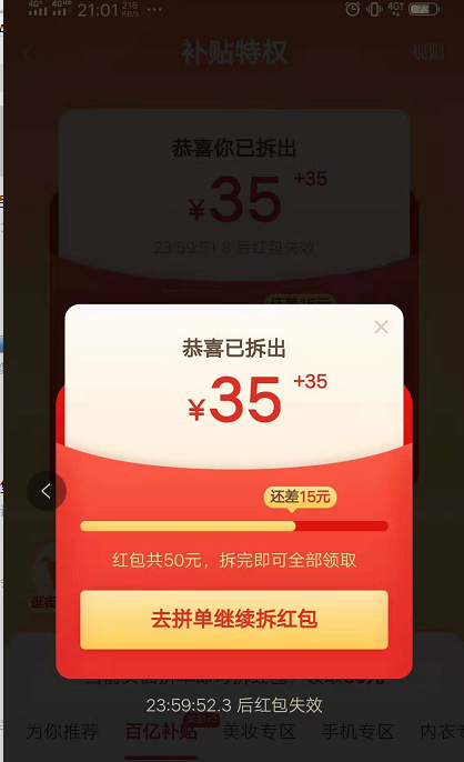 很多产品会通过“浏览XX秒页面可得惊喜”的方式给用户送上惊喜,而拼多多是在你出其不意的时候弹出浏览惊喜,这是超乎用户预期的沉浸式的产品设计。