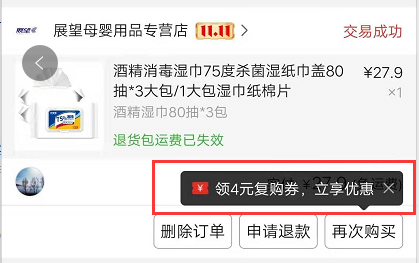 买过的产品给你送上一张复购券,想想是不是有点小确幸。心情一好,容易刺激用户买它。