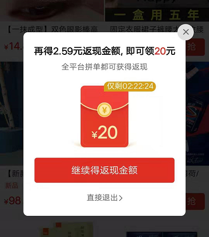 2、让用户充满希望(免单、拼单返现),觉得有机会割平台韭菜