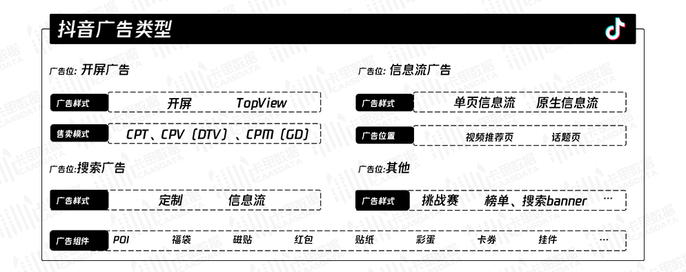 当前,抖音的广告位可以分为四大类,分别是开屏广告、信息流广告、搜索广告和其他。