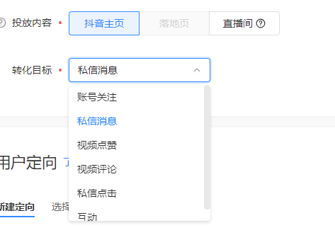 第二是促进粉丝转化,主要实现方式是通过投放吊起私信进行1V1沟通,实现收集线索或导流微信等目的。