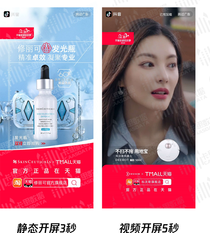 开屏广告顾名思义,就是打开抖音后第一眼看到的画面。开屏广告属于典型的品牌广告,拥有最佳的位置,只要打开抖音就可以看到,结合抖音最近公布的6亿DAU,虽然贵点,但曝光量一定不俗,是不差钱的品牌广告主首选。