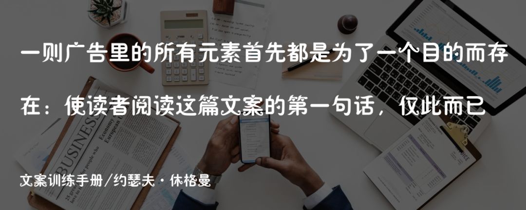 "文案的所有元素都是为了使读者阅读这篇文案的第一句话"。