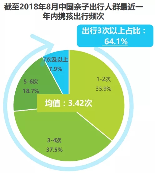 依据艾瑞2018年出版的中国亲子出行生态影响力研究报告显示,亲子出行人群一年平均出行3.4次。