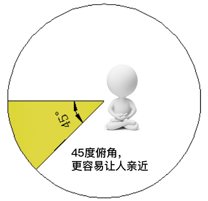 因为大平台的发展初期,往往是将原本付费的事情免费、用亏本销售的方式,尽快吸纳尽可能多的用户,所以一定会尽可能让消费者觉得自己高高在上,这就形成了45°俯视。