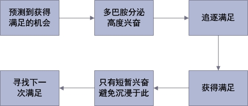 也就是说,每当你预测能有一个机会获得满足时,你体内的多巴胺,就会随着这种预期而大幅提升。而当得到满足之后,多巴胺的增长却很有限,且维持时间很短。