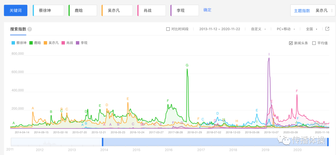 简单搜了一下流量明星的指数,可以看出波动逐渐变剧烈,周期逐渐缩短