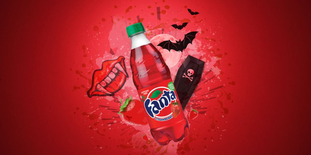 而芬达自己也很擅长迎合泰国人民的“养鬼”文化,在官网上贴出把红色芬达和蝙蝠、吸血鬼等“鬼文化”相关元素融合起来的宣传图。