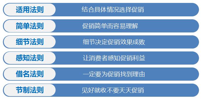 在促销中,怎样提升促销效果?如何避开促而不销、不促不销的尴尬局面?我们对很多成功和失败案例的分析,总结出了以下五大法则: