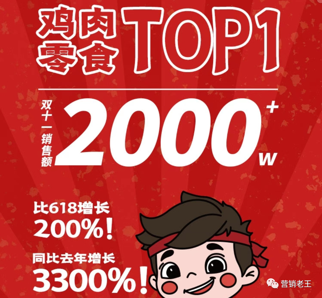 王小卤,天猫鸡肉零食TOP1。近3年零食类目成长最快的品牌,没有之一。双11销售额突破2000万,同比增长3300%。它切入的是零食大类目,这个类目几个大巨头,三只松鼠百草味良品铺子来伊份等,但是王小卤不做大而全,只切其中的卤鸡爪类目,一个小小的鸡爪创造了新消费,做到了快一个亿的市场。今年下半年开始,更是从线上走到了线下,进驻了几百家便利店。