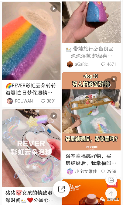 而rever的彩虹浴球,在小红书上,有数百篇关于Rever小彩虹浴球的分享,都是拍摄浴球爆出彩虹尾巴的过程。为了让这一过程更好看,很多人甚至会调整摆放角度和水温。