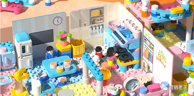 在积木类目,乐高和仿乐高产品占据了大部分市场、消费者对国产品牌认可度低、小颗粒不适合低龄儿童玩耍。布鲁可针对现有的问题打造出专为1-6岁儿童设计的产品,提出“颗粒基础单位不小于1厘米”的大颗粒积木概念,用颗粒大、边角圆润、容易拼搭的系列产品满足了1-6岁学龄前儿童对于适龄益智产品的需求。