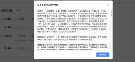 【注意】:未签署《直播间引流承诺函》则无法进行投放。