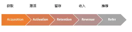 "AARRR"源自于五个词语的缩写,分别是Acquisition(获取)、Activation(激活)、Retention(留存)、Revenue(变现)、Referral(推荐),对应了推广生命周期中的5个重要环节。