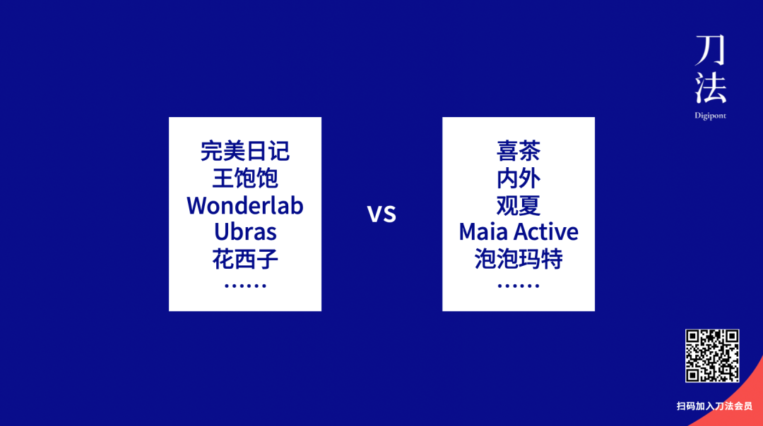 首先,大家先看下这两组品牌,思考一下,你觉得他们有什么样的区别,或者他们的增长、打法、路径有什么样的区别?
