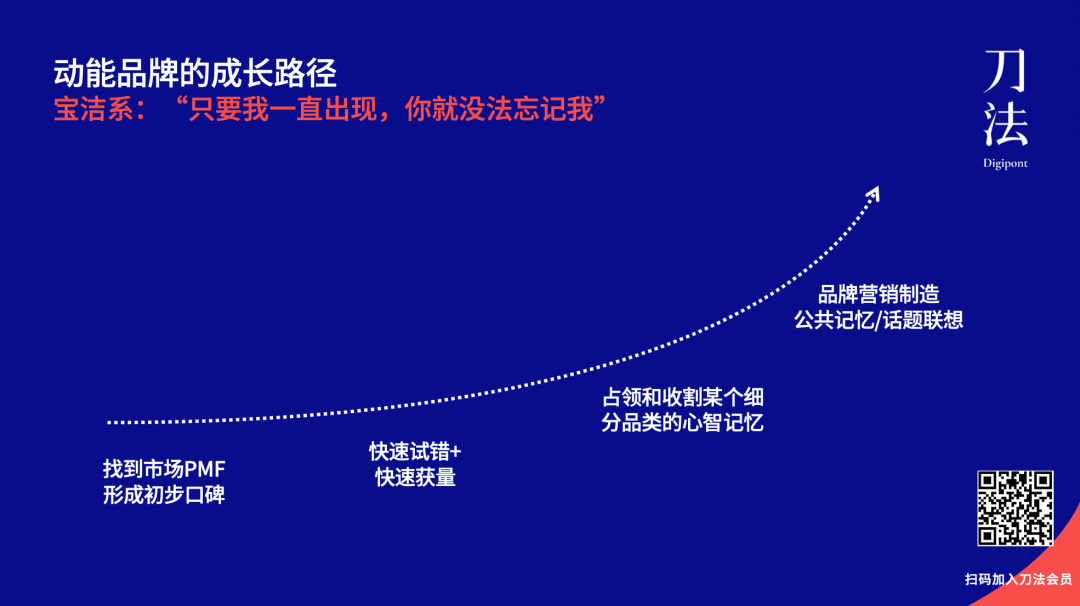 说白了,这些动能品牌的成长路径用一句话来说就是:”只要我一直出现,你就没有办法他脱离我、忘记我。“