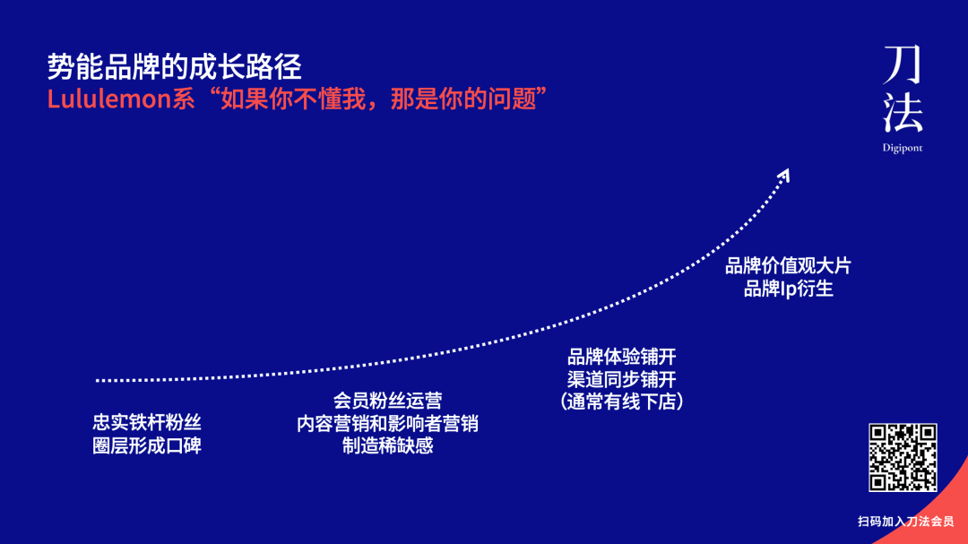 因此这些品牌虽然最开始的增速不快,但是一旦起势就是非常强劲的,就像Lululemon那样——"如果你不懂我,不是我的问题,那是你的问题。”这是与动能品牌完全不同的逻辑。