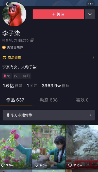 1.是知名大V,比如【李子柒】这种,本身是已经出圈的大V,抖音也仅是一个分发渠道,自然有流量保障;