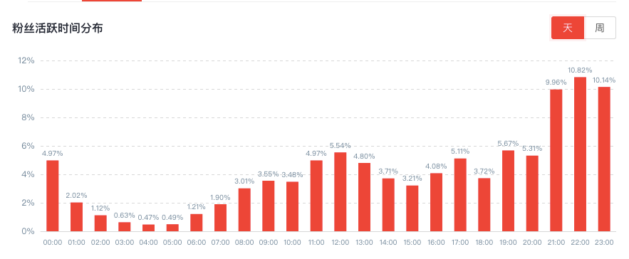 为了验证是不是大家都喜欢半夜看美食探店号,我们再来看看粉丝的详细数据。