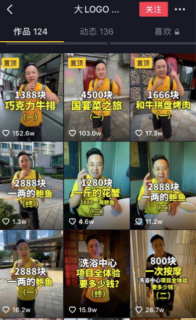 以【大LOGO吃垮北京为例】,会去试吃各种稀奇古怪的餐馆体验,而且很多都价格不菲。这种内容的猎奇和独特性,是很多粉丝所不能体验到的,也正是通过视频解了口福。