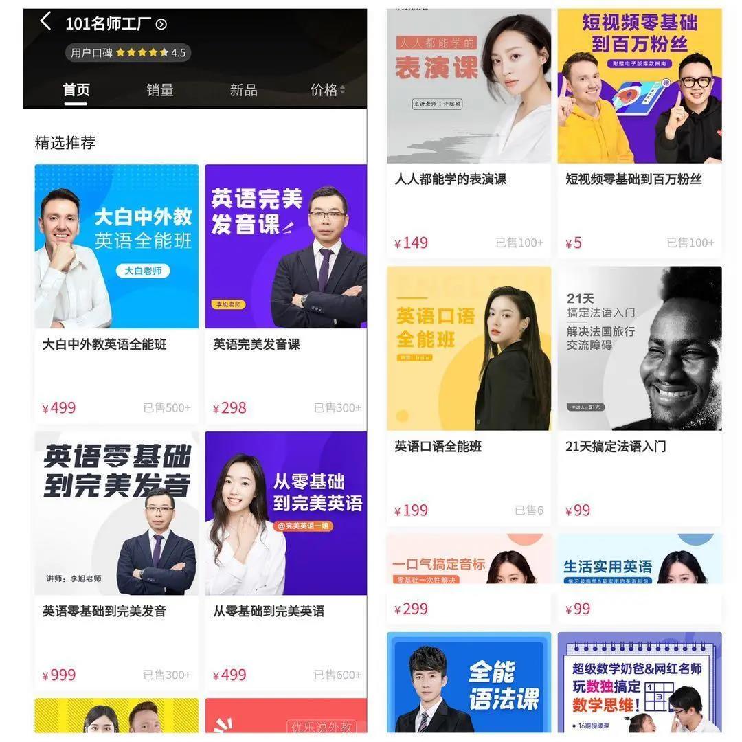 101名师工厂头部教育主播在售成品课 (来源:抖音小店)