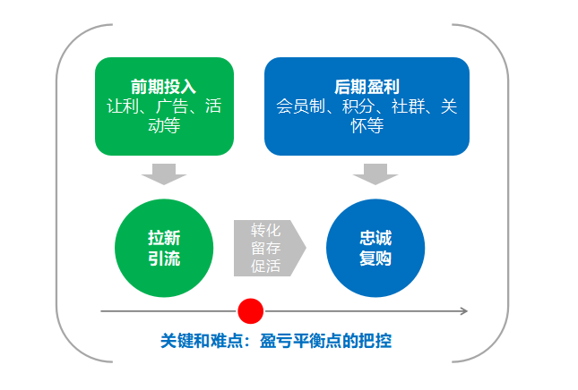 不过,前期的战略性亏损只是手段,获得阶段性盈利才是目的。如果前期一直投广告,后续对于客户留存做得很差,把用户圈进来后没有购买,或者产品质量不行,买了一次不再来,那么后面就一直没有机会赚钱。