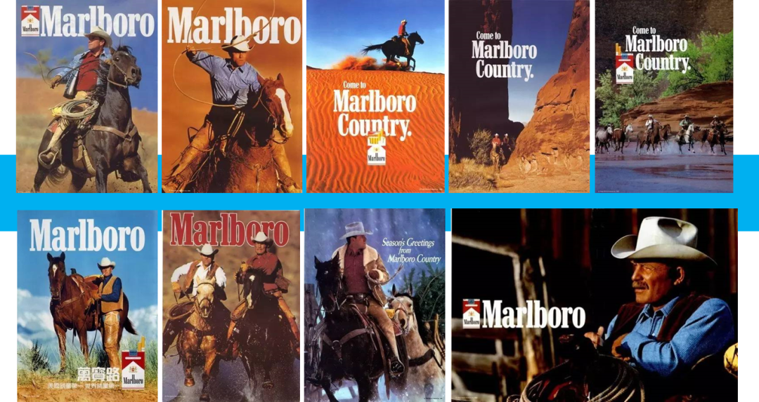 他借助西部牛仔的形象,打造出一系列万宝路男性气质的广告,广告语很简单——“welcome to Marlboro”。通过向大众塑造极度鲜明的品牌形象,迅速让其具有明确的品牌美好联想。