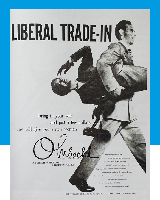 很多大师的作品之中,我们都可以看到类似“夸张感”的画面表达。例如伯恩巴克公司给奥尔巴克百货出品的一则广告:“慷慨的以旧换新”。一个男人夹着自己的妻子,走向奥尔巴克百货店,文案是“带来你的太太,只要几块钱,我们将给你一位新女人。”通过幽默的表达,让人明白百货公司带来新的体验,当时看这幅作品时,总觉得有一种戏剧夸张感,一个女人像模型一样被夹在怀里,有点搞笑,还有点记忆深刻。