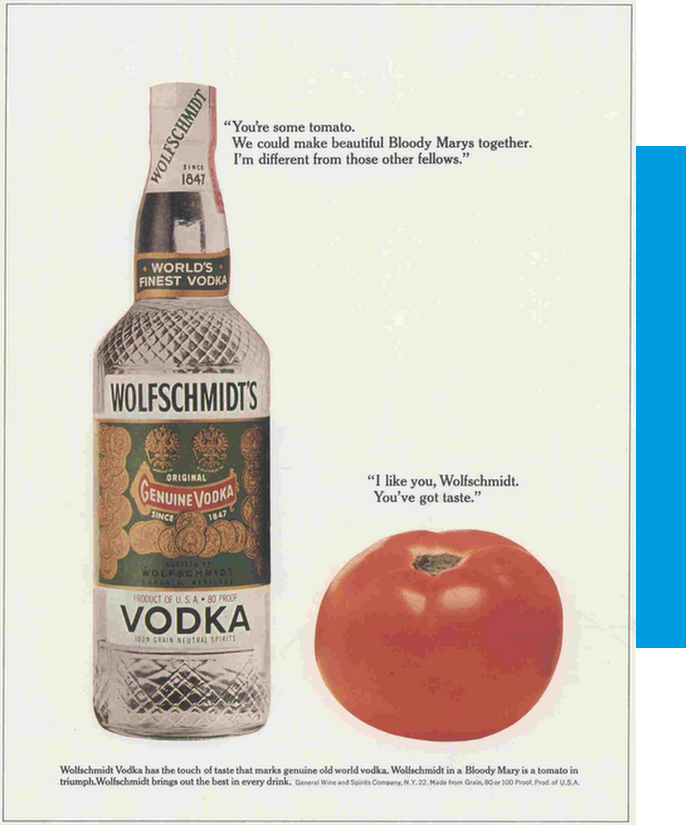 我们的创意大神乔治·路易斯,他可以说是将这种“语不惊人死不休”的感觉发挥到了极致。他一会儿将安迪沃霍尔装进番茄酱里,一会儿让伏特加像个色鬼一样调戏西红柿,一会儿又将赌马搞成体育运动,在他的作品之中,你可以看到N多种极富戏剧感创意的内容。