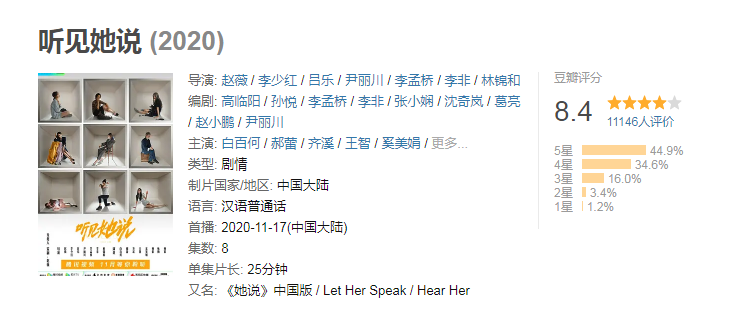 通过每个单元的演绎,听见她说,也就是听见她们说,让社会听见女性最真实的声音。