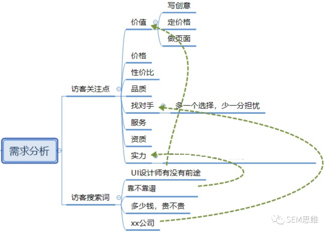 每个需求分配多少预算,每个预算要带来多少个点击,均价是多少,我们可能不能控制的非常精准,但预算的上一级,需求,我们是可以控制的,需求控制的好,账户效果也不会太差,那需求怎么来的呢?我们就要进行项目分析。