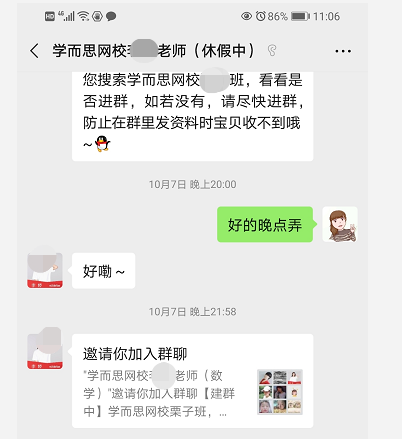 初加微信时,这位学而思老师连给我发四条信息,我都没有回复,即便她后来给我发了入群链接,我依然无动于衷。我回忆了一下,当时我拒绝入群,主要有2个想法:
