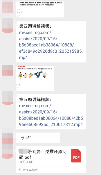 你以为到这里就完了?学而思的周到达到了“变态”级别。接下来,这位老师不但点评了我的孩子,还给我发了她亲自录制的错题讲解视频与核心知识点资料,让我倍感暖心。