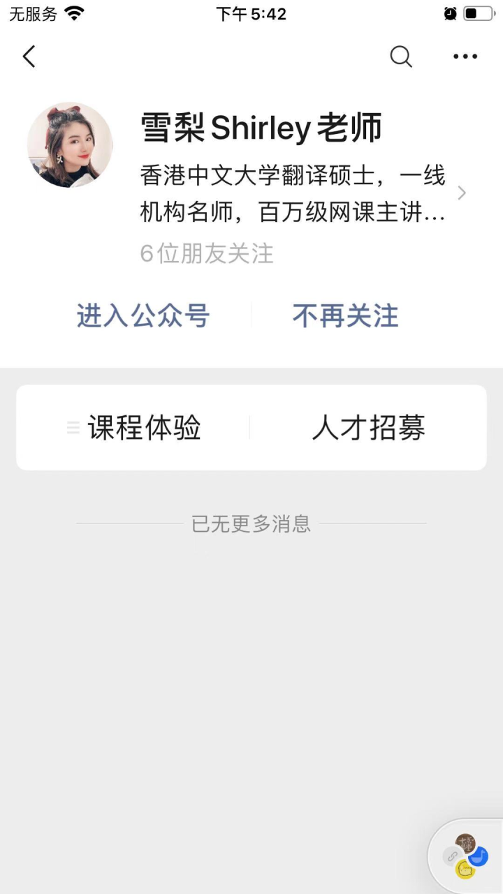 3)公众号没有任何文章的推送,文章的推送可以激活一部分没有付费的用户,通过输出价值让用户认同课程。当然这个跟团队人力有限相关,如果人力足够,可以通过公众号做一些裂变增长、课程促销的活动。