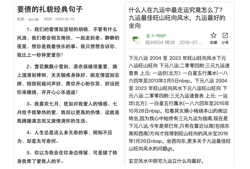△反面案例:左图内容资源文不符题,为低质内容;右图内容资源涉及恶意采集。