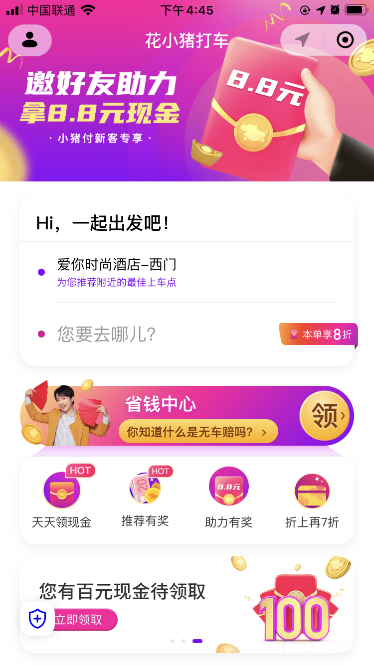 通常新平台刚上线,都会花一笔重金砸下去做推广,那么这时候就是羊毛党们的福利时刻到了,我记得刚上线那会也是直接邀请朋友点击链接注册花小猪即可获得3元的现金奖励,这个金额是直接在余额里面,可以直接进行提现,当时还引起了朋友圈的一波刷屏。