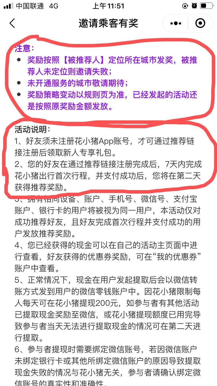 那除了这个地区受限,还有一个规则限制,那就是被邀请用户除了是新用户之外,还要完成注册并且在7天之内完成首次使用平台出行的任务,推荐奖励才会到邀请人的账户里面。