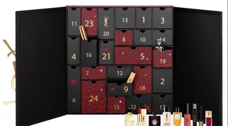 YSL今年圣诞礼盒也主打倒数日历概念,24抽格设计,一次满足消费者收齐热卖色、拥有经典香气的愿望,包含经典热销唇膏、唇露,有超热门的小金条、金方管唇膏,超模聚焦明彩笔、睫毛膏、防水眼线笔,更有卸妆、精华液、香水,妆前乳等明星产品,还有时尚配件漆皮指甲油。值得一提的是,这次YSL礼盒包装融入了不少红色豹纹元素,风格突破较大。