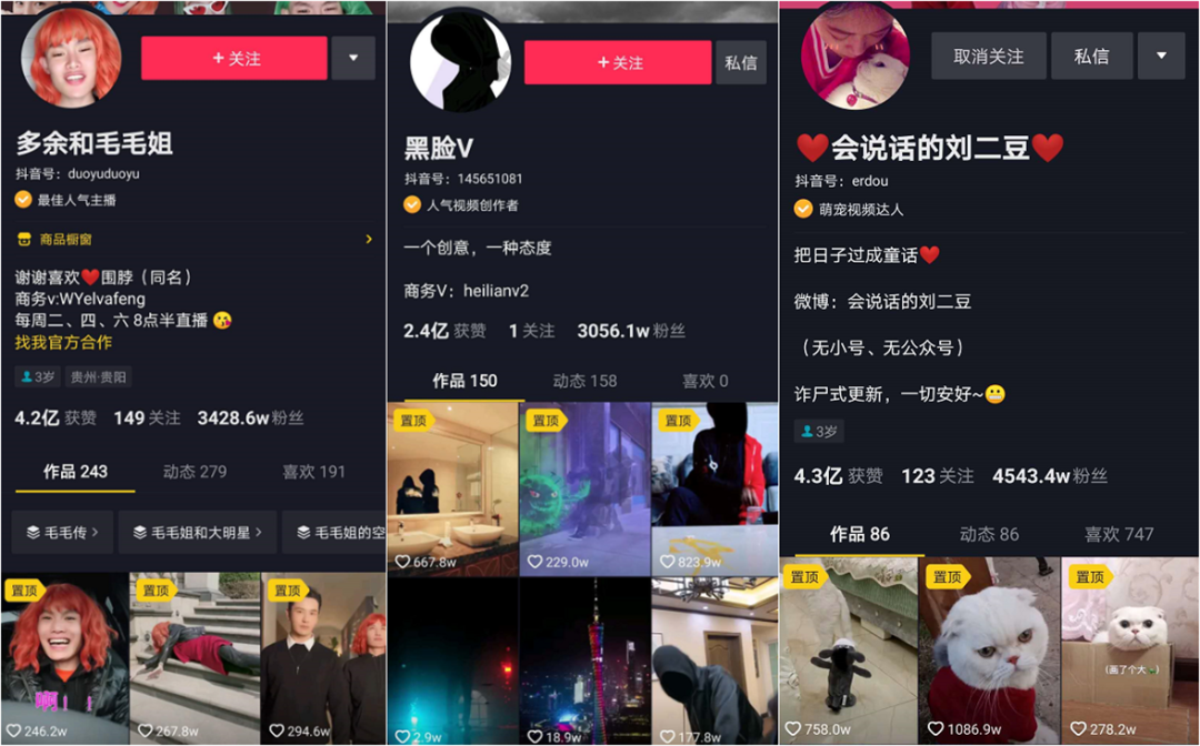 例如我们熟悉的“会说话的刘二豆”、“黑脸V”、“多余和毛毛姐”……都有自己清晰的定位,或萌宠,或特效,或沙雕……