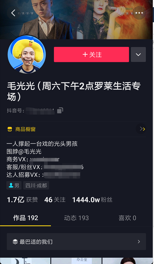垂直内容输出,加上本人形象以及才艺的专业度,收获了不少人气,目前为止,这位大人的粉丝有822.4万。