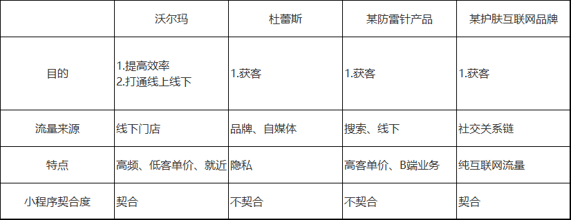 大多数企业都属于此类情况。核心业务本身就在微信内,或者逐步把外部的流量(如tb商家、线下连锁店)导入微信生态内,希望通过小程序搭建微信生态内的商业模型。他们对小程序往往有较高的预期,希望小程序除了承载现有业务外,还能通过裂变获取大量低成本用户。