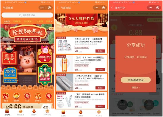 适合裂变的产品有两个显著特征:用户多为女性,低价产品多。浏览【气质商城】,可以看到大都是100元内,价值感很高的商品,特别适合女性分享和剁手~