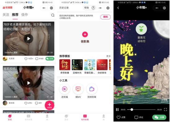 小年糕以中老年人制作影集的刚需作为产品核心,横向切入老年视频、送祝福、做mv、视频剪辑、圈子等功能,充分满足了中老年人对视频的多种需求。通过中老年人不断自主分享视频使得除前期推广外,裂变获客近乎0低成本;而由于中老年人对亲情友情极其重视和分享视频的习惯被培养起来后,0成本的激活唤醒便成为自然。