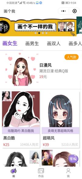 手绘头像业务非常挣钱,我前几天才在【画个我】小程序上花钱买了卡通头像~