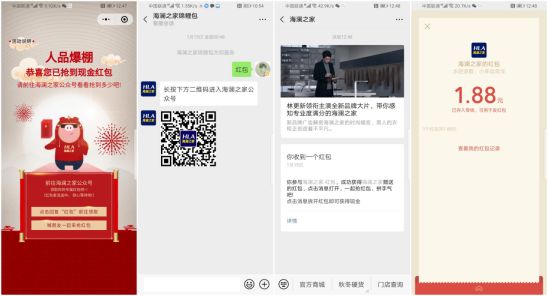 但也许海澜之家可以通过识别openid,区分关注人的性别选择发红包的金额,降低成本。另外品牌风控经验也是值得学习的,我用小号微信号和未实名微信号分别参与活动,都提示无法参与,如果没有风控机制的经验,很有可能出现被撸百万羊毛的情况。