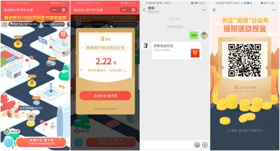 两个小程序的裂变设计不是一个级别。微保红包裂变活动有四点非常好:1.步数+游戏化设计 2.先把钱“给出去” 3.契合春节过年主题4.关注公众号后自动提现到钱包。
