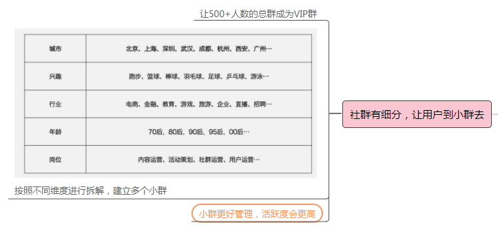 社群有细分,让用户到小群去